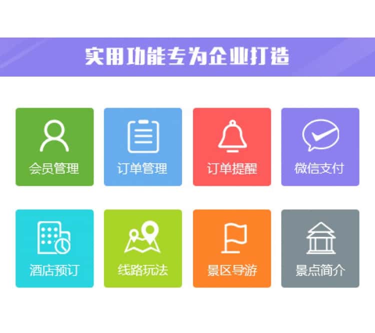 旺季景区营运压力大,售票窗口压力大人工检票效率低。通过微信售票,游客购票后可通过二维码验证进入景区,方便快捷。