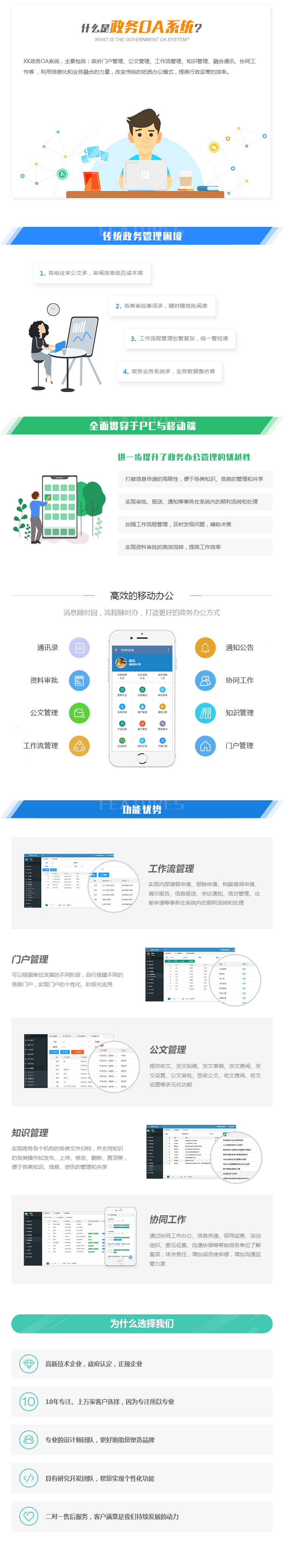 提供收文、发文拟稿、发文草稿、发文查阅、发文设置、公文审批、签收公文、收文查阅、收文设置等多元化功能